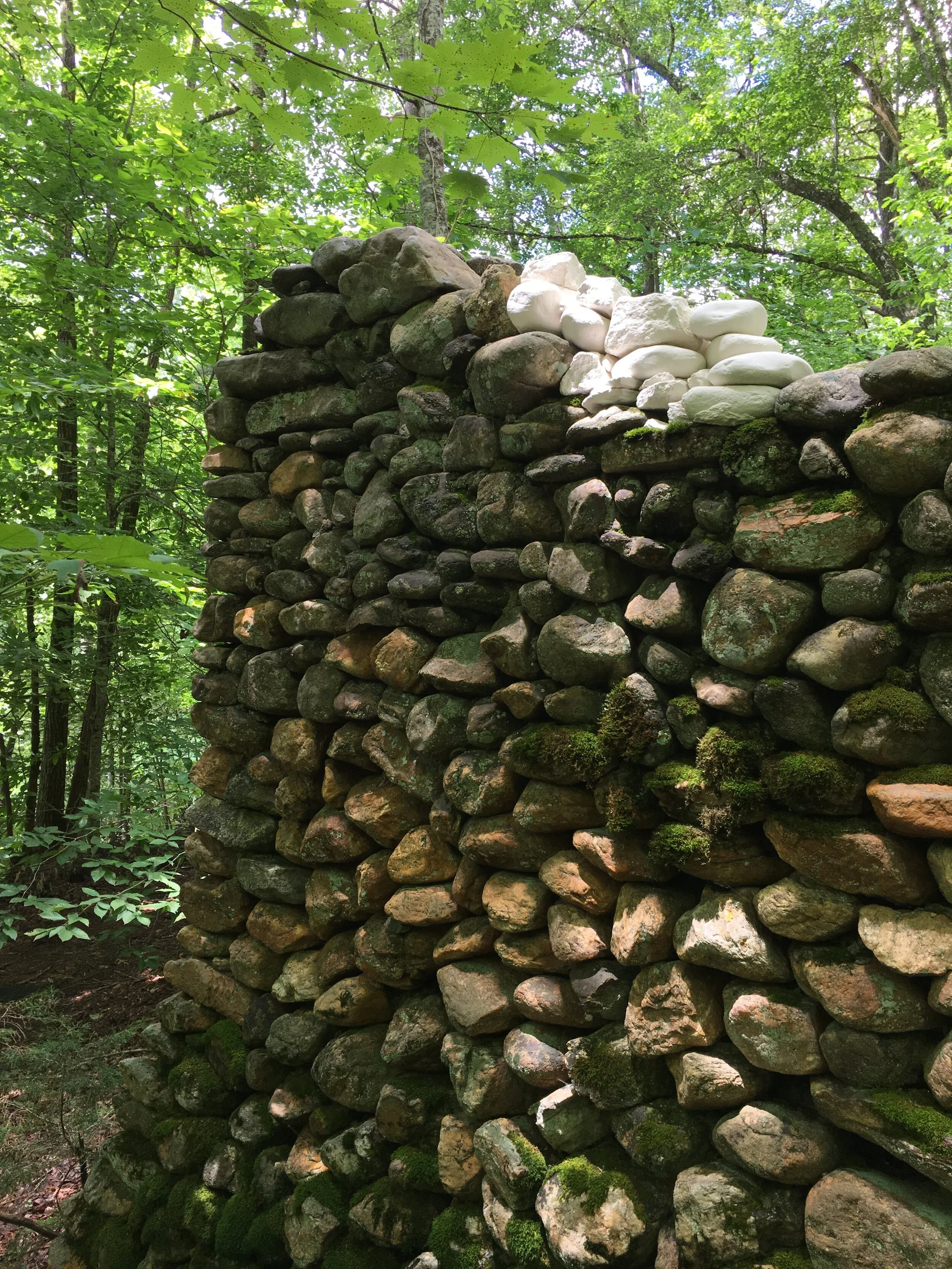 When I first encountered these ruins, I felt an impulse to mend the sections of the existing structure which had fallen, replacing the solid, fallen stones with hollow, porcelain forms. After learning more about the history of the site, I discovered that the intended building had never been completed. This new understanding added an important element to the work—not only is it a repairing of the past, it is an opportunity to continue to build upon the abandoned structure, each new stone, an opportunity for a different future.